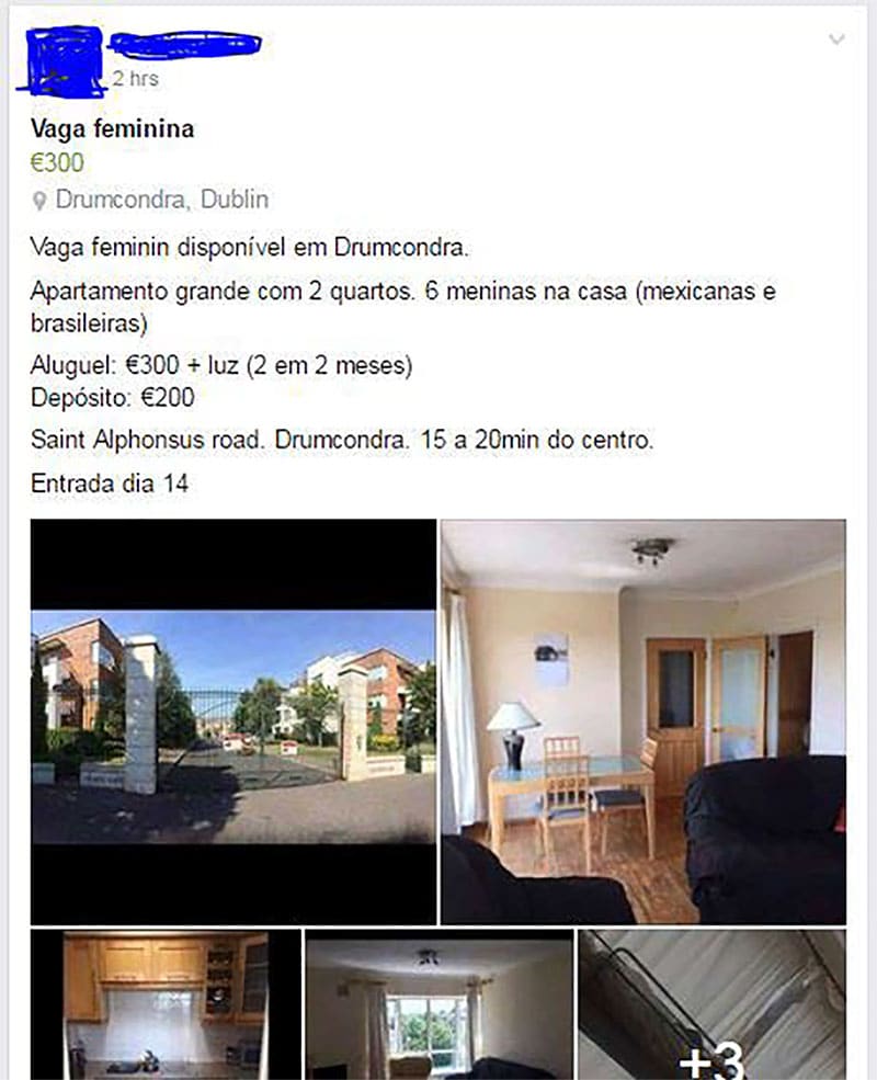 Além do Daft, talvez o que seja mais comum para anúncio e procura de vagas de aluguel na Irlanda entre a comunidade brasileira na Irlanda, sejam os grupos de Classificados no Facebook.